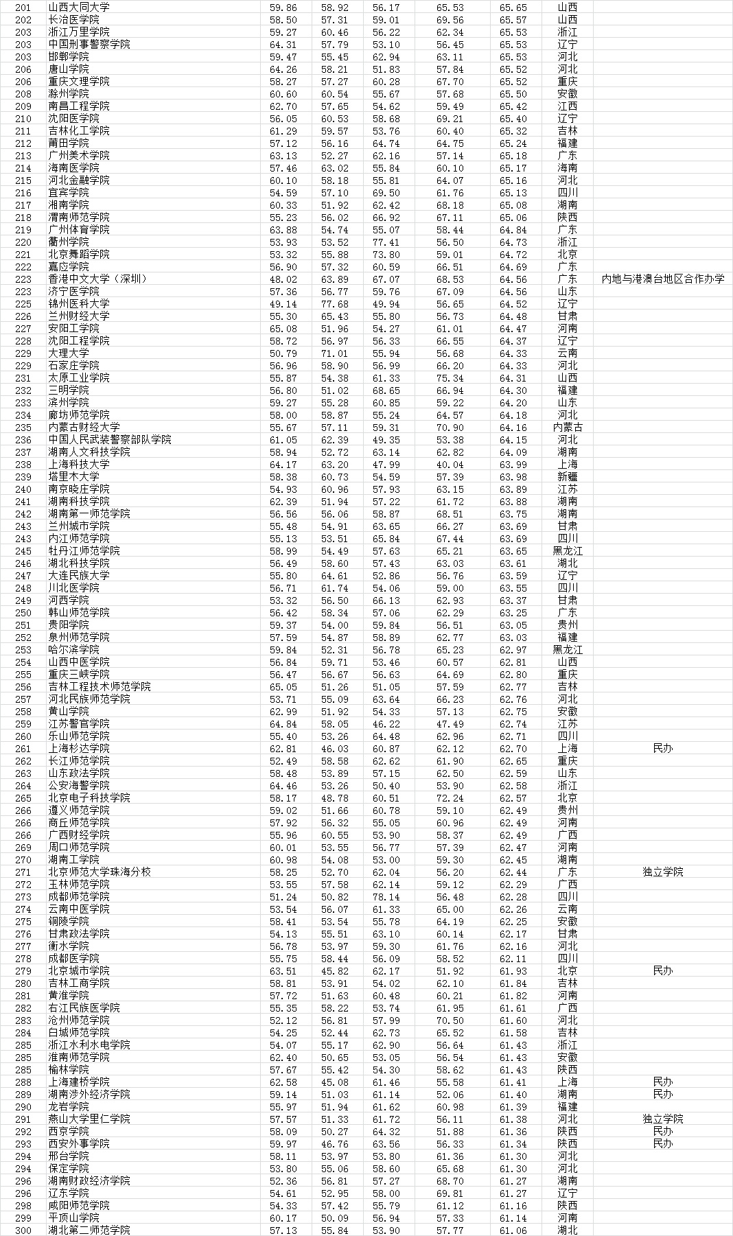 位列榜单前三位高校分别是:温州大学(综合指数100)、中国计量大学(综合指数99.59)、河北科技大学(综合指数98.36),第4名到第10名依次是青岛农业大学、上海工程技术大学、南昌航空大学、西安石油大学、国际关系学院、中国民航大学和安徽工程大学。可以发现,前10名高校主要分布在华东地区和华北地区,排名前两位的高校办学地均在浙江省。